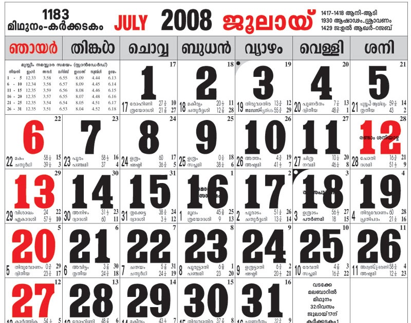 July Calendar 2024 Malayalam.